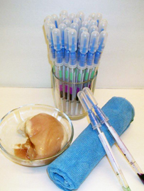 TestSwab is a quick and easy way to accurately monitor the cleanliness of surfaces to help insure cleanliness. Test swabs detect protein residues and therefore residual allergens left on a surface after cleaning. Simply swab a surface, release the reagent and if food residue is present the reagent will turn purple. The color change provides a semi-quantitative measure of the surface cleanliness. The more protein present, the quicker the color change to purple and the darker the color. Test Swab quickly validates the absence of proteins on a surface.